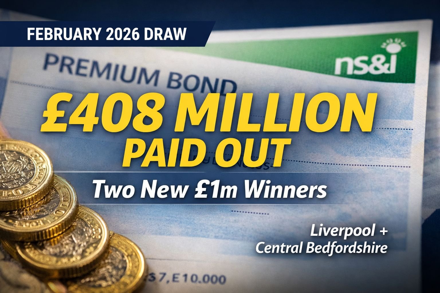 Premium Bonds prizes today have created two new millionaires in the February 2026 draw, with £1 million jackpots landing in Central Bedfordshire and Liverpool. National Savings and Investments has paid out £408,082,375 this month across 6,183,066 tax free prizes, a result that will matter to savers in Manchester and across the UK weighing up where to keep their cash.